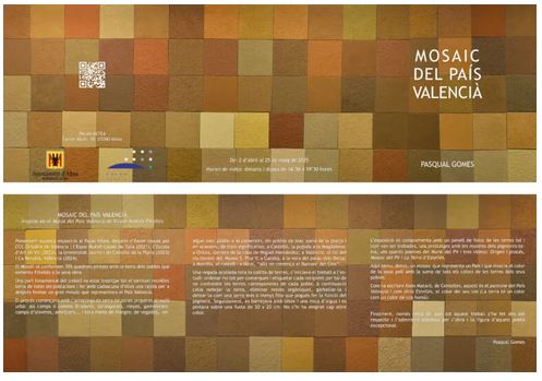 2-abr a 25-may | Palau Altea-Centro de ArtesExposición: Mosaico del País Valenciano (Pasqual Gomes). Inspirado en el Mural del País Valenciano, de Vicent Andrés Estellés. Entrada libre y gratuita.Horario de visitas: martes y jueves de 16:30 – 19:30 h.